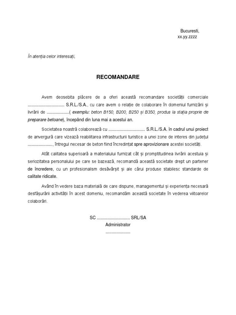 Model Scrisoare De Recomandare Colaborator Prestator Pdf